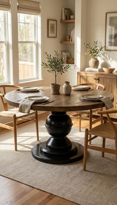 Sculptural turned pedestal base forms a commanding central mass with classical symmetry.