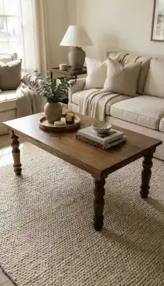 Solid Wood Coffee Table Defined by Sculpted Legs and Reinforced Perimeter Frame