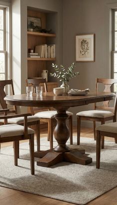 The turned pedestal form introduces soft curvature, adding visual movement to the table’s architectural core.