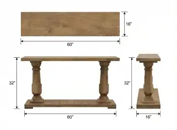 Dimensions: Approx. 60” L × 16” W × 32” H
