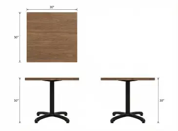 Clean square tabletop geometry provides balanced dining proportions for compact seating layouts.
