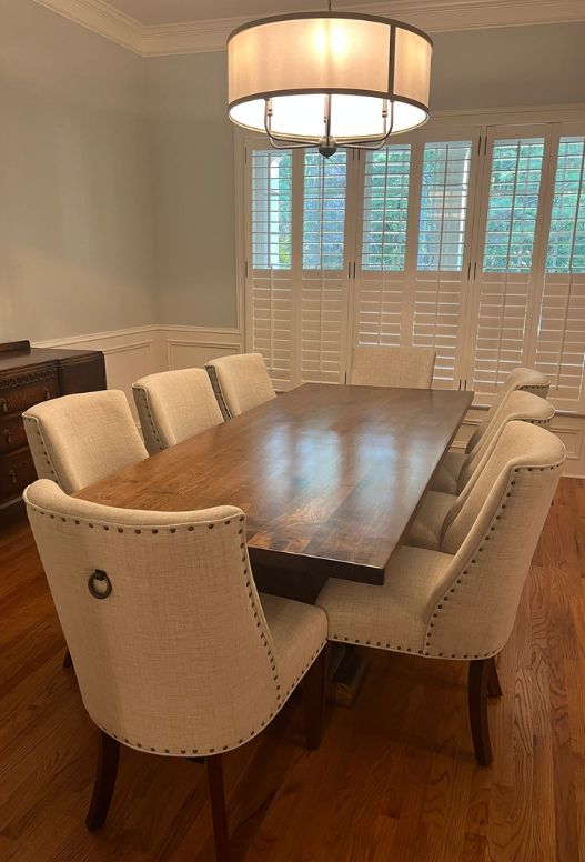EXCELLENT Based on 9 reviews Posted on Alex AcchioneTrustindex verifies that the original source of the review is Google. We love our new dining table from Peach Custom Tables! It’s incredibly well made, beautiful, and the extra leaves make it perfect for hosting. The delivery was seamless, and they were a pleasure to work with from start to finish. Highly recommend!Posted on Doctor BourbonTrustindex verifies that the original source of the review is Google. I had a great experience with this company. Good communication and quick service and delivery. Great quality furniture. Highly recommendPosted on Hannah DombekTrustindex verifies that the original source of the review is Google. Great experience purchasing a custom table from Peach Custom Tables. We requested a custom 65” square table for our basement pub nook. Pricing was competitive but the turn around time was excellent - fastest quoted compared to others by several weeks. Excellent quality and beautiful finished product. Thank you Alex & Peach Custom Tables!Posted on Randall NorthTrustindex verifies that the original source of the review is Google. We are VERY happy with our new table! We had an idea in mind and Peach Custom Tables built it exactly as we imagined. These tables/chairs are made of solid wood, unlike comparable box store varieties made of composites that cost as much (or more). They will build what you want and you pick the wood, dimensions, chairs, benches... We are grateful to have been referred to Peach Custom Tables and definitely pass on the recommendation!Posted on Kalai RobinsonTrustindex verifies that the original source of the review is Google. Alex and his brother are incredible! They welcomed our vision for the table and created it custom beyond our highest expectations! The table they created for our dining room is the most beautiful table I’ve ever seen and it was an absolute joy discussing the design and process with Alex. The stain is absolutely beautiful! Alex was so kind and communicative throughout the entire process; he even shared photos during development, including the table legs that were carefully crafted by his brother. They even delivered the table with much care, ensuring that everything was carefully wrapped and padded for delivery. The professionalism and sincere joy they have for their craft is reflected in what I can only consider an absolute work of art… impeccable! My husband and I are beyond ecstatic and cannot wait to host our dear family and friends, and recommend Peach Custom Tables to all!Posted on Shane BogniTrustindex verifies that the original source of the review is Google. Had two tables made. We couldn’t be happier. Turned out fantastic. Great communication from the start. Highly recommend Alex and the team to build your custom table.Posted on chloeTrustindex verifies that the original source of the review is Google. Our experience with Peach Custom Tables was flawless! Alex drove out to Greensboro with stain samples to help us choose a color. He sent pictures showing the progress and was very easy to communicate with. Our table turned out perfect! I highly recommend them to build your next table.Posted on ChaseTrustindex verifies that the original source of the review is Google. Alex and Willy are great to work with and very professional. We love their tables.Posted on Anderson MezaTrustindex verifies that the original source of the review is Google. They were very kind to me, they treated me very well. I recommend them. Peach Costom Tables made the table of my dreams with excellent work. I recommend speaking with Alex.Verified by TrustindexTrustindex verified badge is the Universal Symbol of Trust. Only the greatest companies can get the verified badge who has a review score above 4.5, based on customer reviews over the past 12 months. Read more